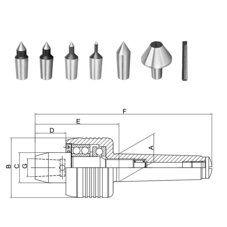 Центра вращающиеся удлиненные со сменными наконечниками DJ-07012 (8831-KPL) DAJIU MACHINERY