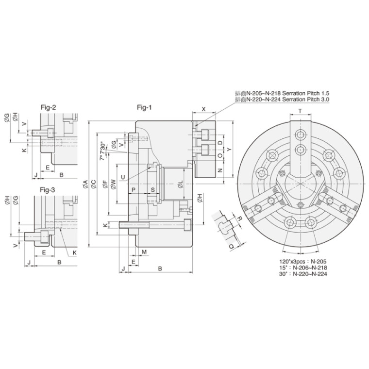 ТОКАРНЫЙ ПАТРОН N-224 | 6-М24 | 520 | 610 | 147 | 463,6 | 205 | М215х3 |