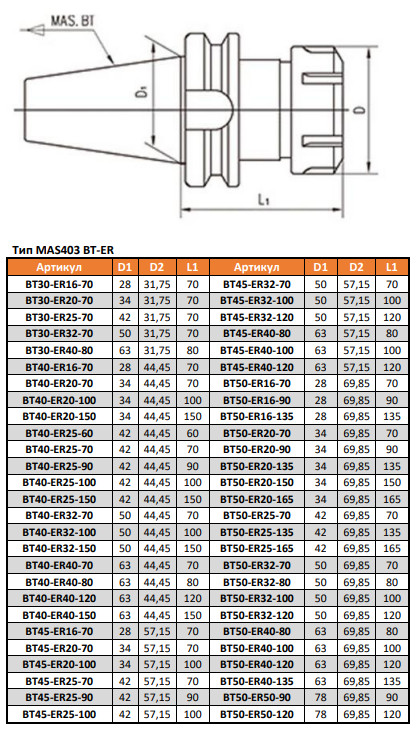 Тип хвостовика: BT50 MAS 403