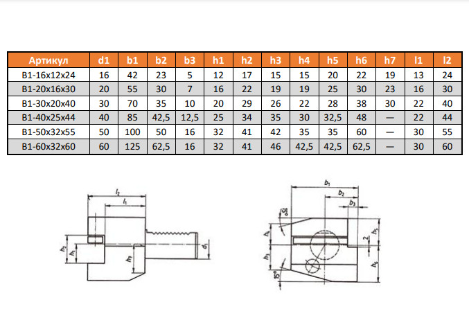 Размер под резец: высота h1/h2 - с проставкой 32 мм/без проставки 41 мм.