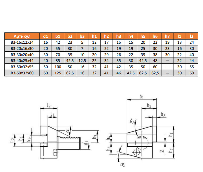 Резцедержатель радиальный правый короткий (тип В3) с хвостовиком VDI 3425 по DIN 69880 (ГОСТ 24900-81).
