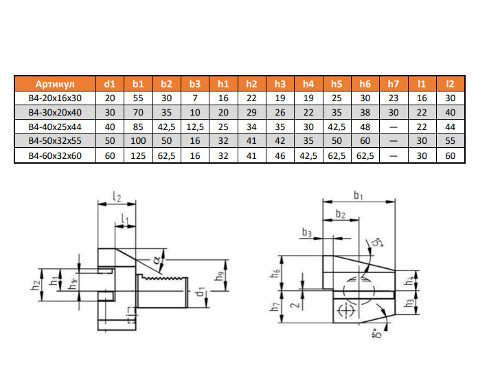 Размер под резец: высота h1/h2 - с проставкой 25 мм/без проставки 34 мм.