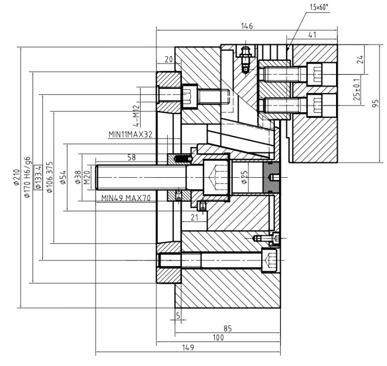 Высокоточный механизированный патрон с закрытым центром ПКМ-210М.J6